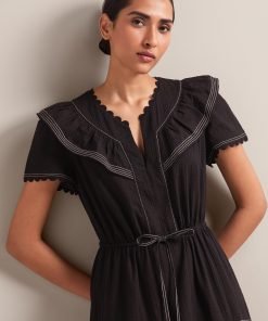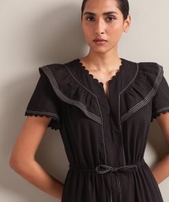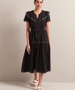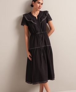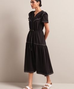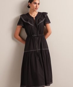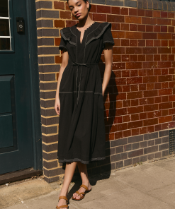 Nessa Cotton Seersucker Maxi Dress – Black