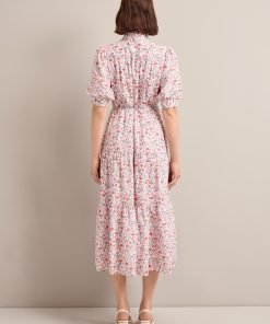 Poppy Silk Blend Maxi Dress – Red Trailing Feather Print