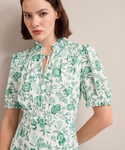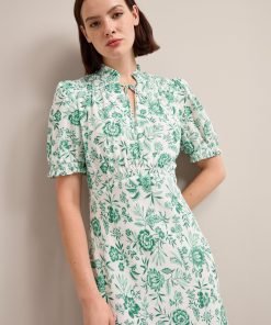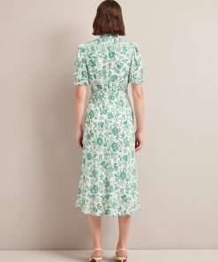 Irina Cotton Blend Midi Dress – Green Palm Floral Print