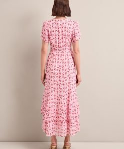 Lotta Gold Metallic Fil Coupé Maxi Dress – Pink Floral Trellis Print