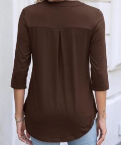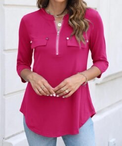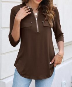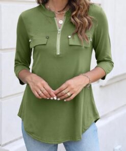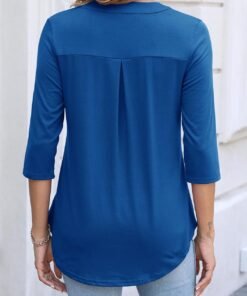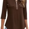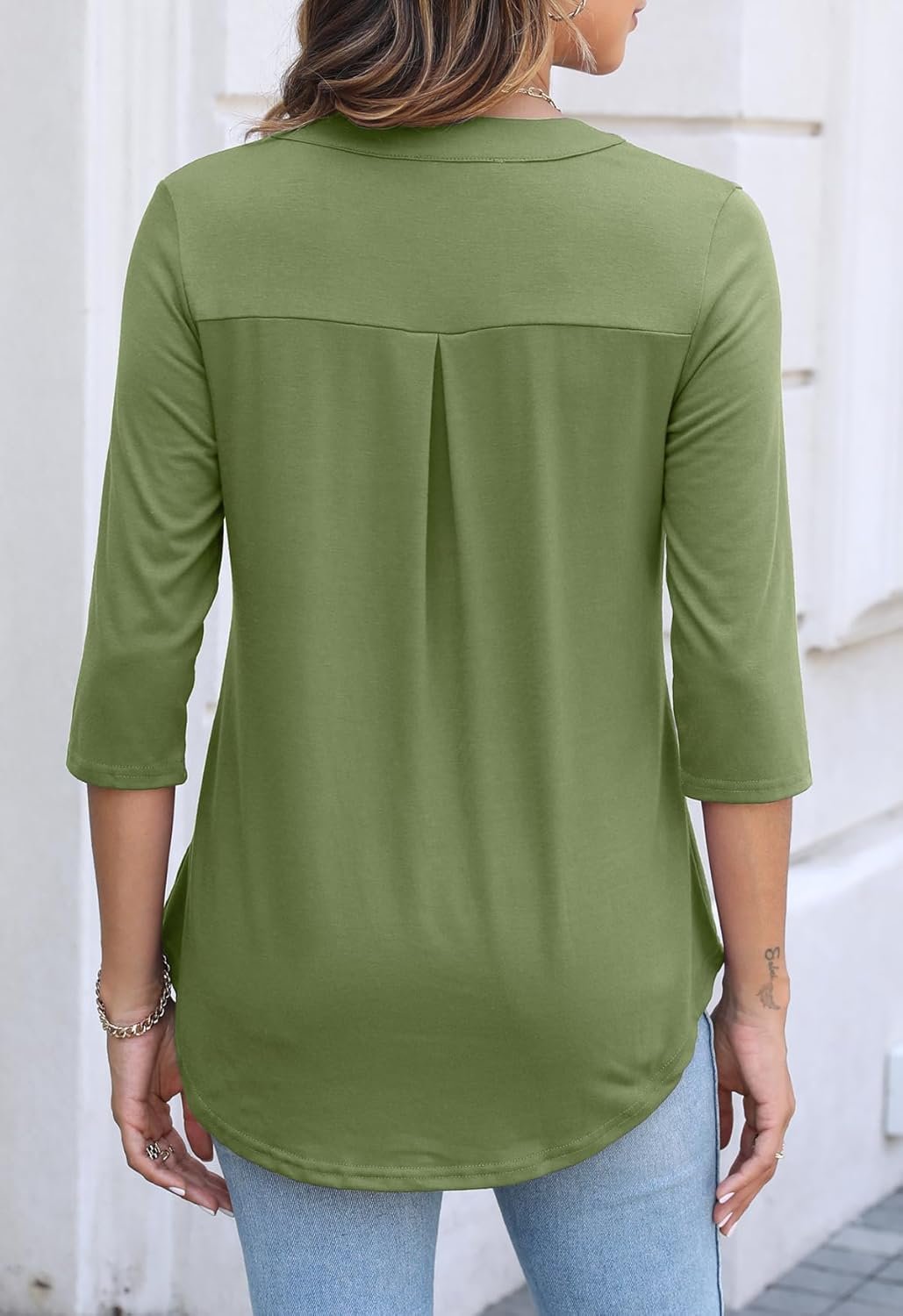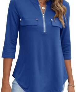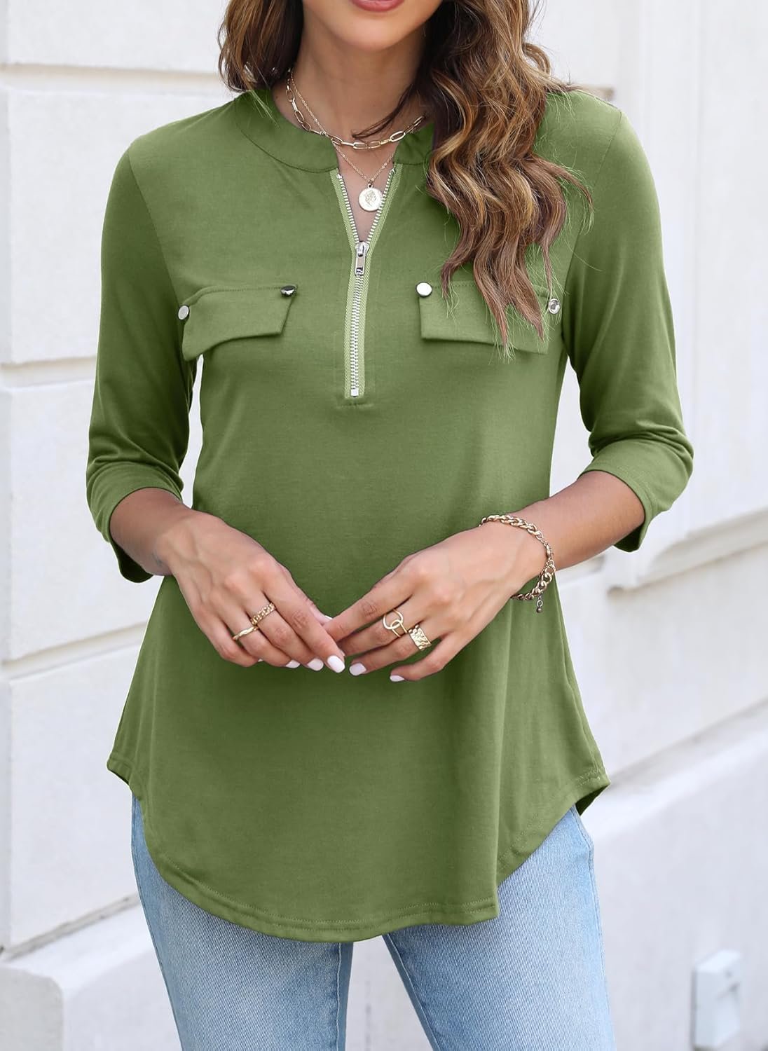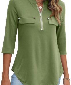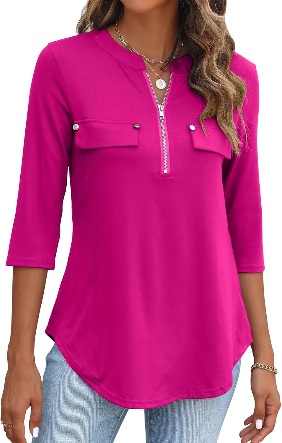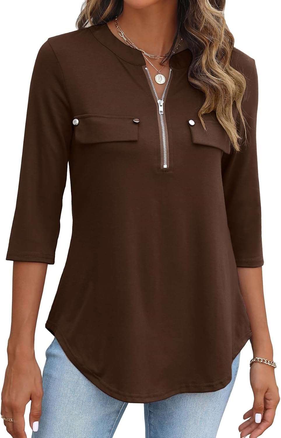 - Features: 3/4 length sleeve womens tops , v neck zipper dress shirt, curved hem, flowy and flattering tops for curvy women , tunic length long shirts to hide tummy / belly fat, stylish tops for women trendy 2025 summer blouses, fashion trendy tops for spring , summer , fall. 3/4 sleeve tunic tops to wear with jeans