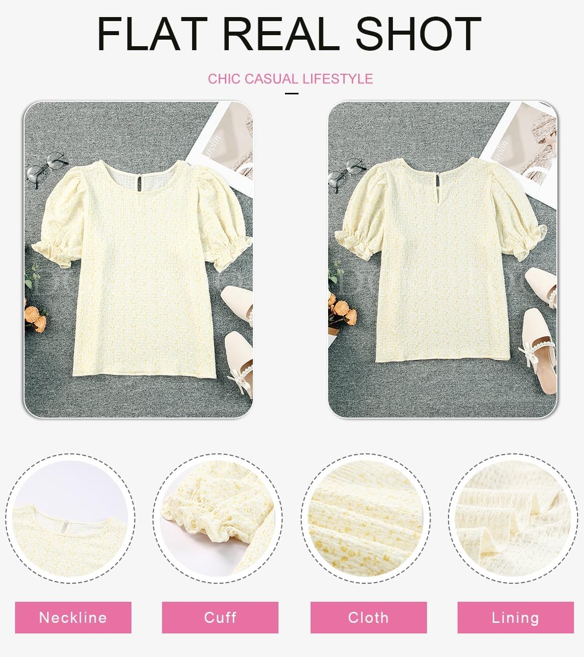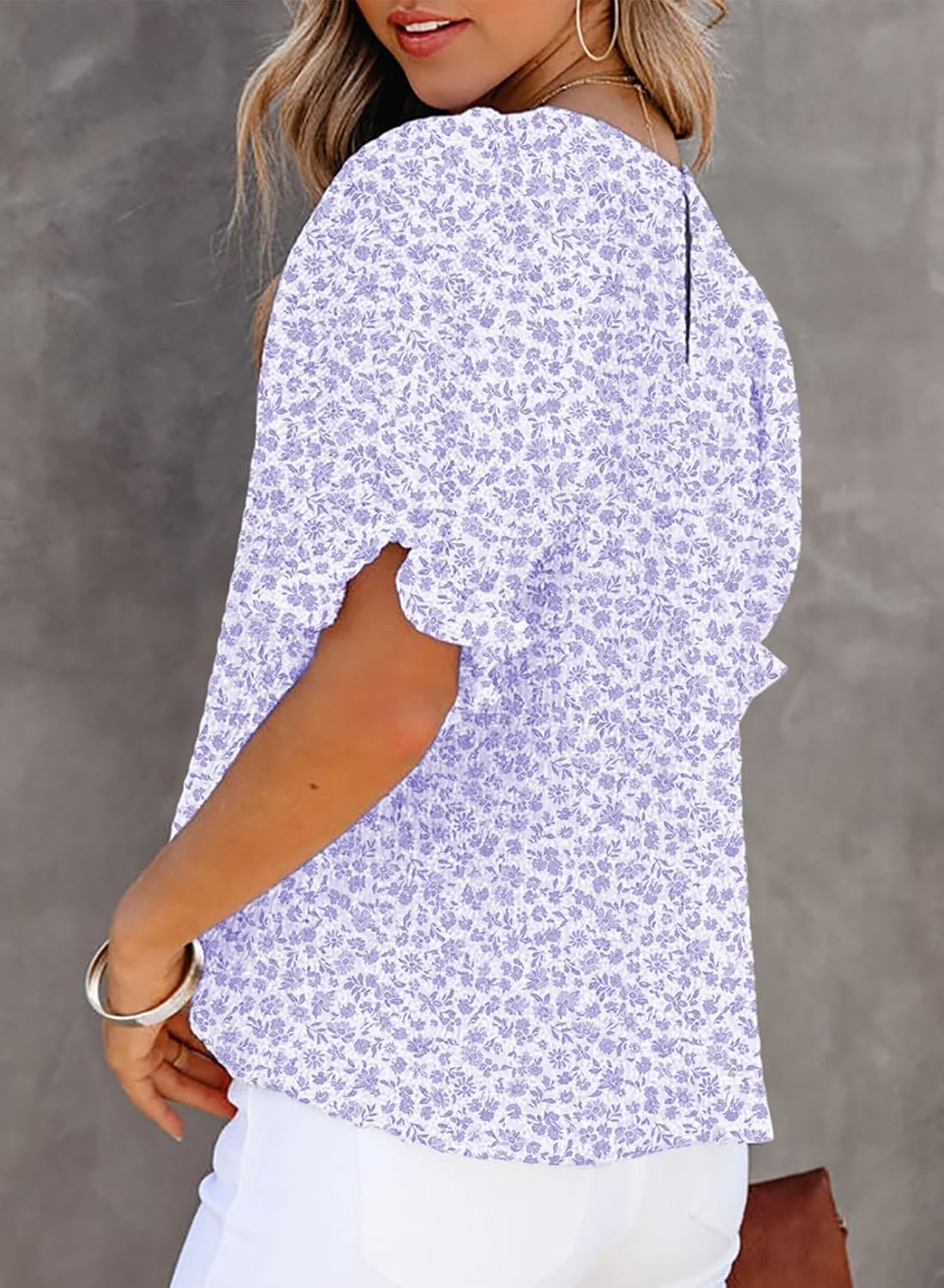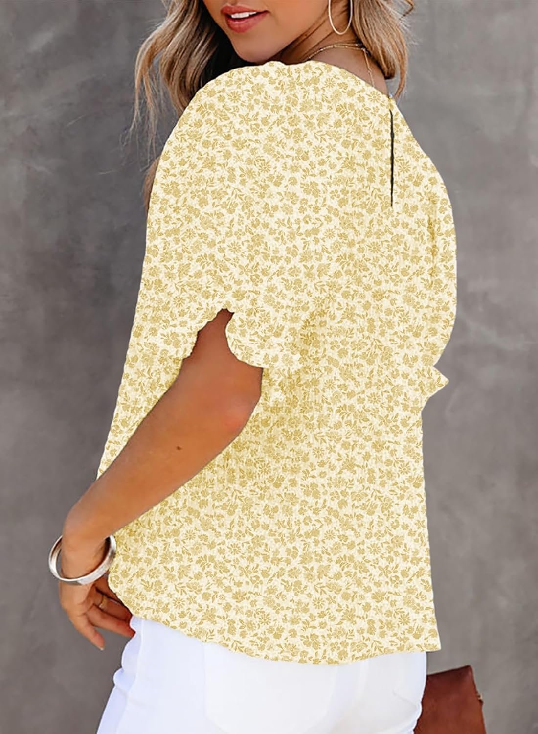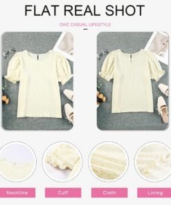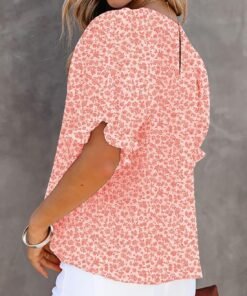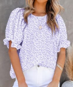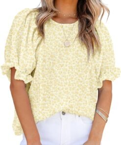Dokotoo Floral Print Blouses for Women Crewneck Smocked Puff Sleeve Shirts Casual Babydoll Tops